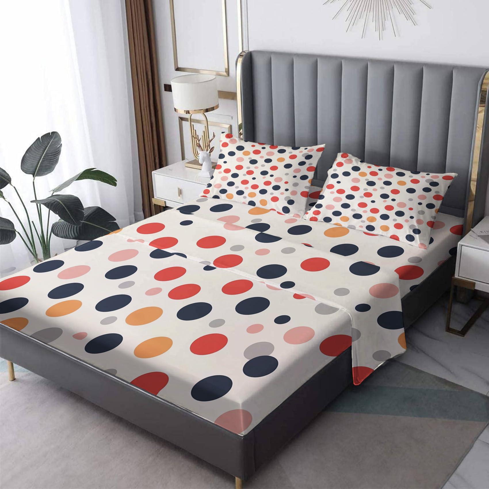 zcsm Polka Dot Sheets Twin XL Size - Kids Polka Dots Bed Sheets, Soft Microfiber & Deep Pocket & Wrinkle Free Patterned Bedding Sheets & Pillowcases, 3 Piece ( 1 Fitted Sheet, 1 Flat Sheet, 1 Pillow Case )