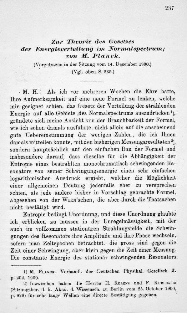 - Planck Quantum Theory Nthe First Page Of Max PlanckS Celebrated Announcement Of The Quantum Theory Zur Theorie Des Gesetzes Der Energieverteilung Im Normalspectrum In Verhandlungen Der Deutschen Physikalishen Gesellschaft Leipzig Germany 1900