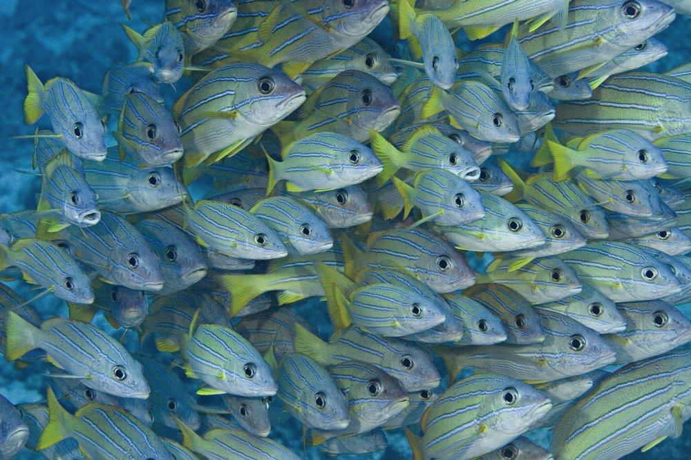 - Hawaii School Of Bluestripe Snapper (Lutjanus Kasmira)
