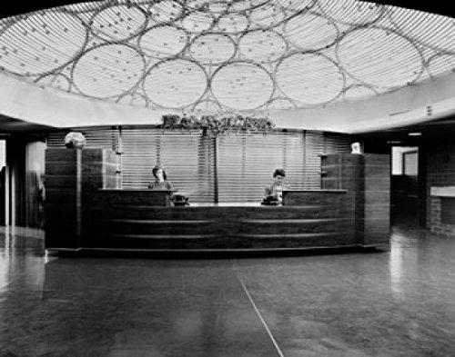 USA Wisconsin Racine Administration and Research Center S.C. Johnson and Son Inc. Reception desk is a licensed reproduction that was printed on Premium Heavy Stock Paper which captures all of the vivid colors and details of the original. The overall paper size is 24.00 x 36.00 inches. This print is ready for hanging or framing and would make a great addition to your home or office decor.