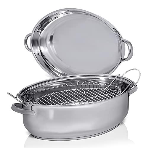 - VERY USEFUL WIRE RACK: The wire rack is stainless steel and is very durable. The large collapsible handles make it super easy to lift even the heaviest roast from the pan, allowing you to use all those drippings for making gravy, right in the pan