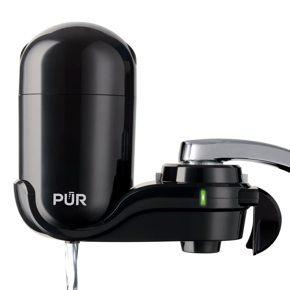 The PUR Faucet Mount Water Filtration System in Vertical, Black has been engineered to deliver superior water filtration directly from your water faucet. Have confidence in your drinking water with PUR's powerful 2-in-1 filtration technology that reduces 10x more chemical & physical substances than Brita's leading pitcher filter.* As the #1 selling brand in faucet filtration, PUR has been trusted for over 35 years because of its rigorous water filtration standards and certifications. PUR is the only faucet filter brand certified by WQA and NSF to reduce 70 chemical & physical substances, including lead, from your drinking water. In addition to having confidence in cleaner, better-tasting drinking water, PUR has also engineered its PUR Faucet Mount Water Filtration System to be easy to use. No tools are necessary, simply click the PUR Faucet Mount Water Filtration system on to your faucet for cleaner water, on demand. It is also equipped with an on/off lever so you can easily switch from non-filtered water over to filtered water. A filter change light ensures you'll always know when it's time to change your Genuine PUR Faucet Mount Replacement Filter. Remember, compatible doesn't mean comparable. Only Genuine PUR Faucet Mount Replacement Filters are certified to work with the PUR Faucet Mount Water Filtration System in Vertical, Black. Engineered for superiority, PUR believes that everyone deserves cleaner, better-tasting drinking water. Disclaimers: *Versus best-selling Brita pitcher filter OB03. Brita is a trademark of Brita LP. Based on comparing a years worth of bottled water (16.9 oz) to a PUR system and 3 filters. Based on Nielsen sales data for the 52 weeks ending 7/1/23. Like other leading brands, PUR does not filter microbes. As of 7/1/23 Brita and ZeroWater were not certified to filter microbes. Brita is a trademark of Brita LP. ZeroWater is a trademark of Zero Technologies, LLC.