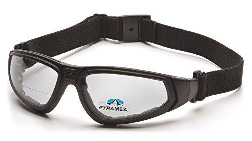 Pyramex xsg clear anti-fog reader lens with black strap/temples features: - lens insert is out of user's direct line of vision - Flame resistant foam padding forms a seal to keep out dust and airborne particles - strap has quick fit Retainer for easy on/off. Interchangeable temples/strap included with each pair lens technology: clear lens: general purposes for indoor applications that require impact protection - visible light transmitted (380-780nm): 96% - UVA, UVA blocked (200-380nm): 100% - Blue light blocked (400-700nm): 9% - IR blocked (780-2000nm): 18% specifications: - Magnification: +1.5 - Bridge: 13.7mm - closest point between lens: 18.5mm - closest point between temple tips: 56mm - lens base: 8.0 Curve - lens size diagonal: 66.3mm - lens size vertical: 44mm - lens thickness: 2.3mm - Overall Length (lens-tip): 163mm - Overall Width: 136.5mm - strap length: 420mm - PD: 68mm - Weight: 35gm.