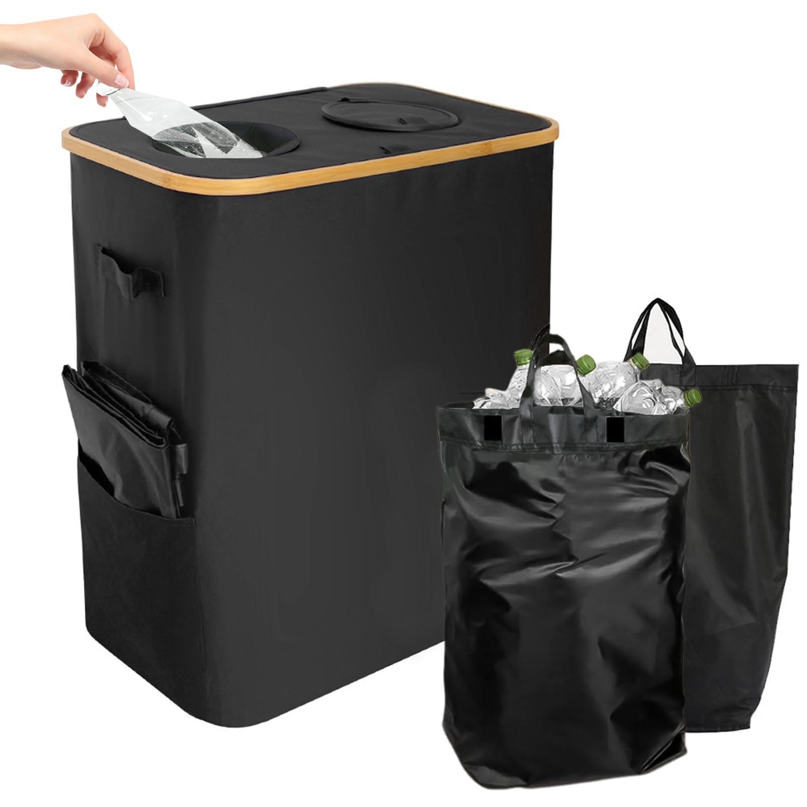 - Reusable Inner Bag: Recycling bin with lid is made of Oxford cloth 600D material and bamboo, with good waterproof function. The kitchen indoor recycling bin comes with 2 reusable, removable and washable inner bags to easily fulfill your daily bottle recycling needs. (Tip: the inner bags can be washed in the washing machine)