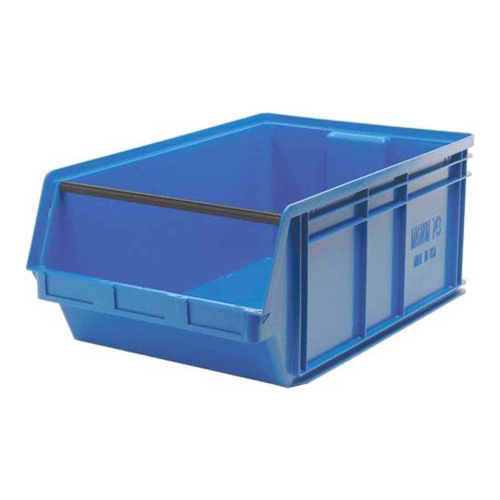 Heavy-duty, extra strong injection molded, high density polypropylene bins, the QMS743 is ideal for transportation and storage of large and heavy components. This bin includes a heavy duty spread bar for extra strength and support. The open hopper front allows immediate access and visibility and these bins are impervious to most solvents, corrosion, rust and rot resistant. The extra heavy, wall thickness allows the containers to stack securely for maximum flexibility. The bin measures 19-3/4" x 18-3/8" x 11-7/8" inches.