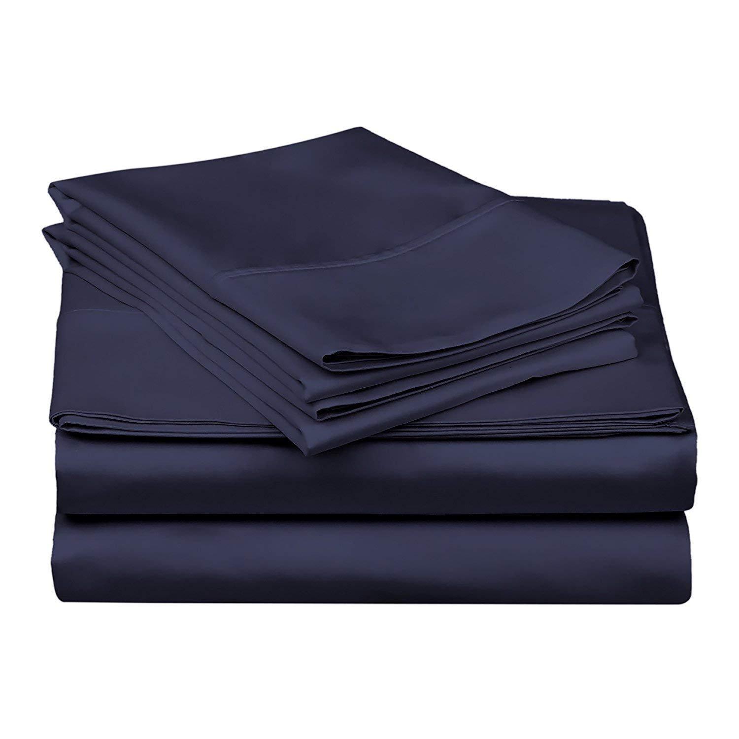 RBS Bedding\'s RBS Bedding\'s 400 Thread Count 4-Piece Sheet Set Expanded Queen/Super Queen/Olympic Queen (69\" x 80\") Navy Blue Solid Fit Up to 28\" Deep Mattress 100% Egyptian Cotton.