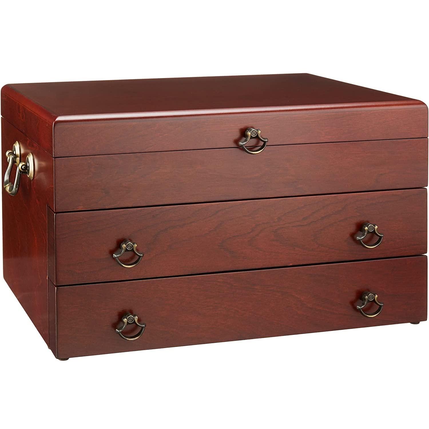 - WHAT'S IN THE BOX: Includes (1) flatware storage chest with a pullout drawer, tarnish-resistant cloth lining, and antiqued brass knobs.