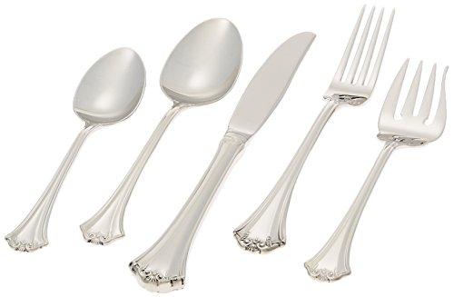 When an anniversary or birthday celebration requires a special touch at the table, this gracious flatware shines forth. Enhancing any fine china pattern, Country French shows slim necks on its handles that flare smoothly into fluted fans. A moderately ornate classical leaf and scroll design details the fan's edge without being ostentatious. Reed & Barton, a renowned silver company since the early 1800s, makes this pattern of high-quality 18/10 stainless steel in a brightly polished finish that is dishwasher-safe and never needs polishing.