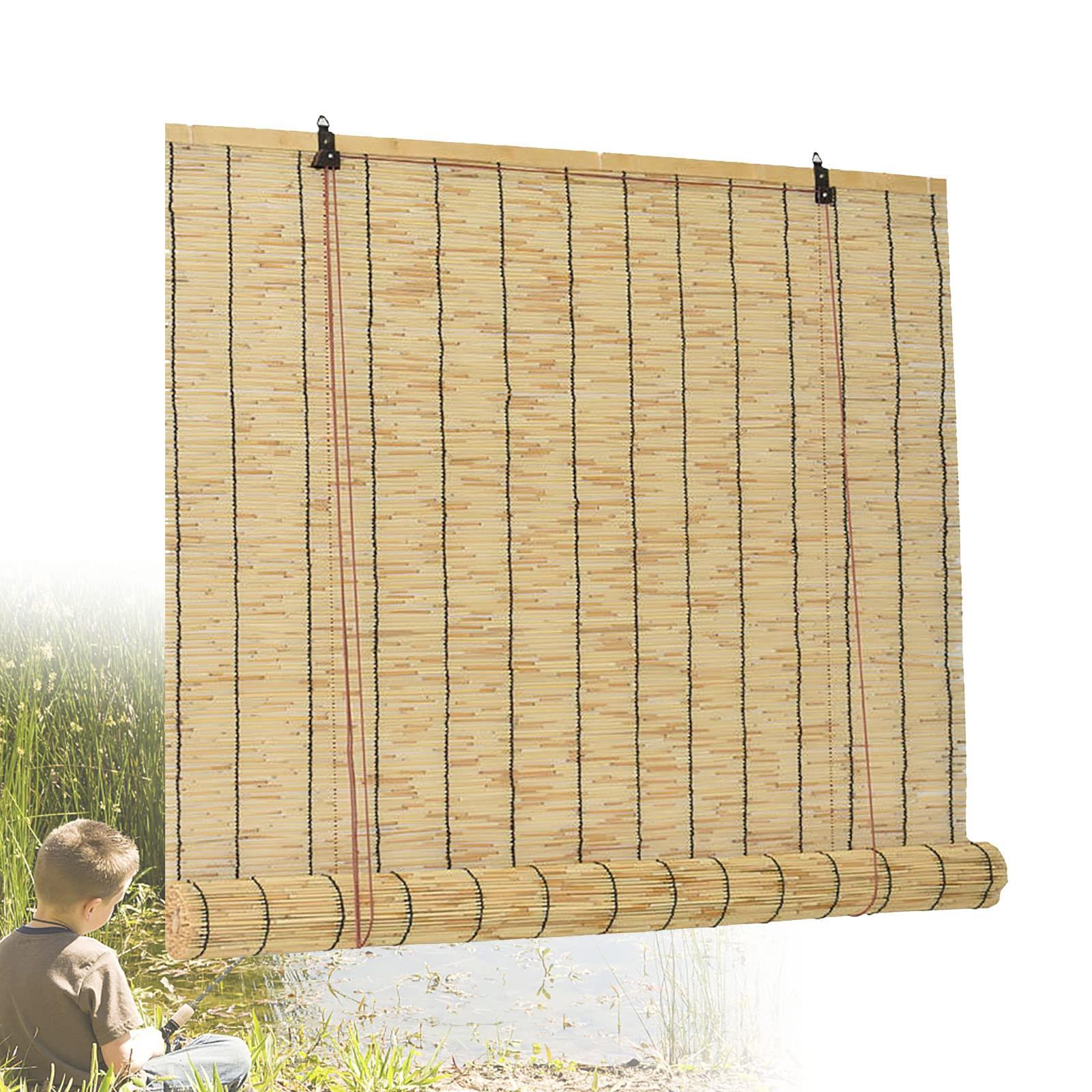 - [Shade and Privacy] The natural blinds roll up shade have the properties of vacuuming, absorbing moisture and purifying the air. Carbonized reed roller blinds block 70% of the sun, shielding you from the hot summer sun and keeping your room cool. This blinds roll up shade can cover patios, gazebos, living rooms, bedrooms, dens, offices, French doors, meeting rooms, balconies, kitchens or anywhere you need shade.