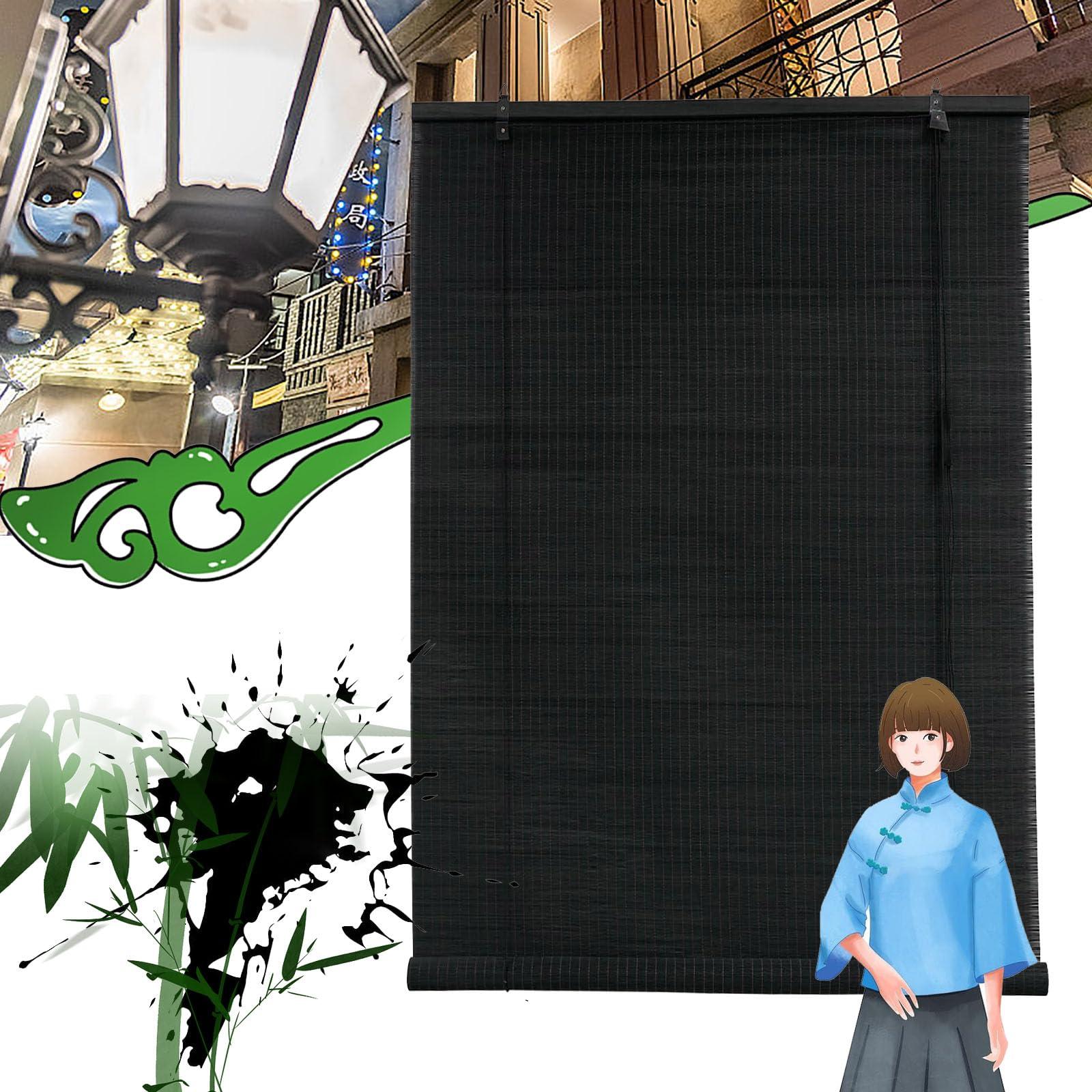 Retro Outdoor Shades for Patio - Bamboo Roller Blinds, Shades for Porch & Indoor Window Privacy - 42x75in (WxH) Black
