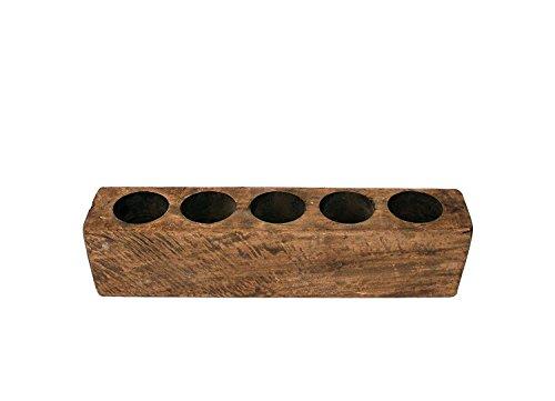 You are buying a Small (5 hole) sugar mold. We will have these wooden molds listed in all sizes, from 2-12 holes. You are buying just the wooden sugar mold. The photo is a representation of you will receive. We carry it all. If you need the inserts or the refill candles, check out our etsy store for those. Our sugar molds are the best. Our candles are vanilla scented. And our molds are sanded and stained. That is the difference. We take the old sugar molds, sand them, wax and polish them. The sugar molds were used in Mexico to form what they called (piloncillo), a dark hard cone shape almost like molasses, sugar. That is how you buy brown sugar in Mexico-even today. We specialize in unique rustic and western decor. The small 5 hole sugar molds measure approximately 16 inches in length. They are about 3 inches in width and about 5 inches in height.