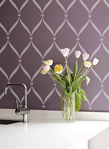 With a flat and gloss paint technique (matte painted walls and gloss paint for the stencil in the same color), you can stencil the Ribbon Lattice Wall Stencil in a lovely tone-on-tone stencil treatment onto an accent wall in the bedroom or on the floor in the dining room.