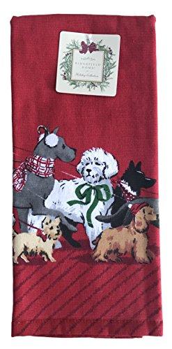 Ridgefield Home Holiday Collection Fancy Dogs Set of Two Chic Red Kitchen Towels 18\" x 28\"
