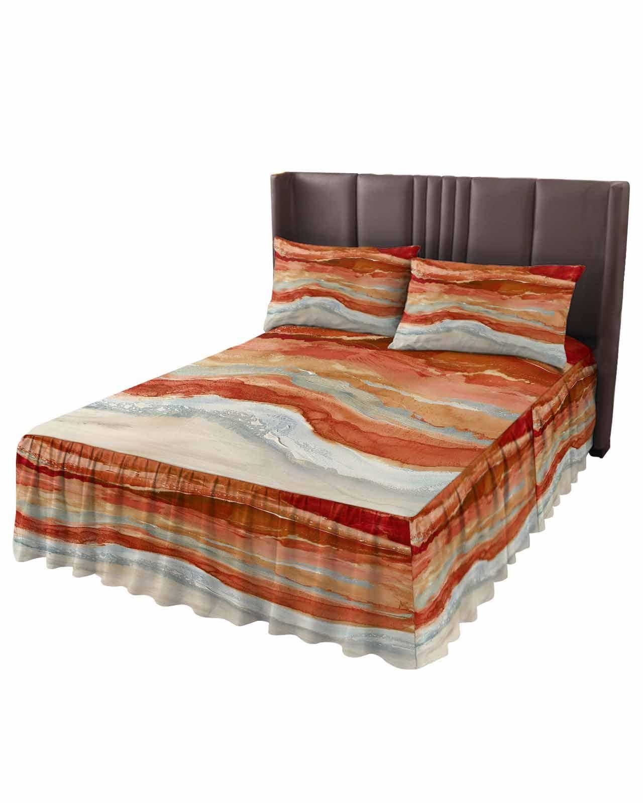 - Decorative Sheet & Pillowcase Sets: No matter your decorating style, it's beautiful and functional. Dust ruffle skirt with a perfect flow and drop, ruffle bed skirt gives it a vintage look. No fussy frills and ruffles mess. The patterns on our bedding sheets & pillowcases are all in pops of color, if you want to decorate your bedroom/guest room/master bedroom, this bed frame cover has what you need and is a great color to brighten up your room. Looks great with your duvet cover.