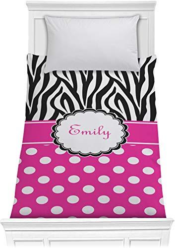 Our beautiful comforters & comforter sets are custom made - printed, cut and sewn for you with your design and/or personalization right here in the USA.The top of the comforters and the pillow shams are a soft microfiber fabric, while the back has the same microfiber fabric in white. The comforters have a double square patterns stitched on them and are filled with a down alternative filling.The shams have an overlapping flap closure on the back and have an approximately 2" flange on all four sides.Both, the comforter and shams are digitally printed; all the fabric is then cut and sewn to make your custom comforter or comforter set.Our twin and twin XL comforter sets come with one 30x22" standard pillow sham, full/queen with two @30x22" standard pillow sham and the king with two 38x22" king pillow shams.We have hundreds of different design templates for you to choose from Each design can be customized to your exact specifications. Not only can you customize the comforter, but you can also customize each pillow sham e.g. for a queen comforter set you have have Mr & Mrs pillow shams with the last name on comforter.You can also upload your own design and/or photos. If you cannot find what you are looking for and have something specific in mind, contact us and we can design it for you.Design Shown: Zebra Print & Polka Dots (#45856)Features:==================================== * Available in multiple designs, patterns, prints, occasions, themes and colors * Printed, then cut & sewn in the USA * Super soft, smooth & luxurious microfiber on top * White microfiber on the bottom * Comforter filled with down alternativeCare Instructions:==================================== * Machine wash cold with mild detergent * Do not bleach * Tumble dry low