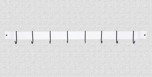 The Rogar 36 inch Bar Pot Rack is the perfect storage solution for your kitchen. This 36 inch pot rack is made of powder-coated steel in a white and black finish. The Bar Pot Rack comes with eight hooks, and mounts 1 inch from the wall. Assembly is simple and includes mounting instructions. Please note that bar pot racks work best for storing small cookware or utensils.
