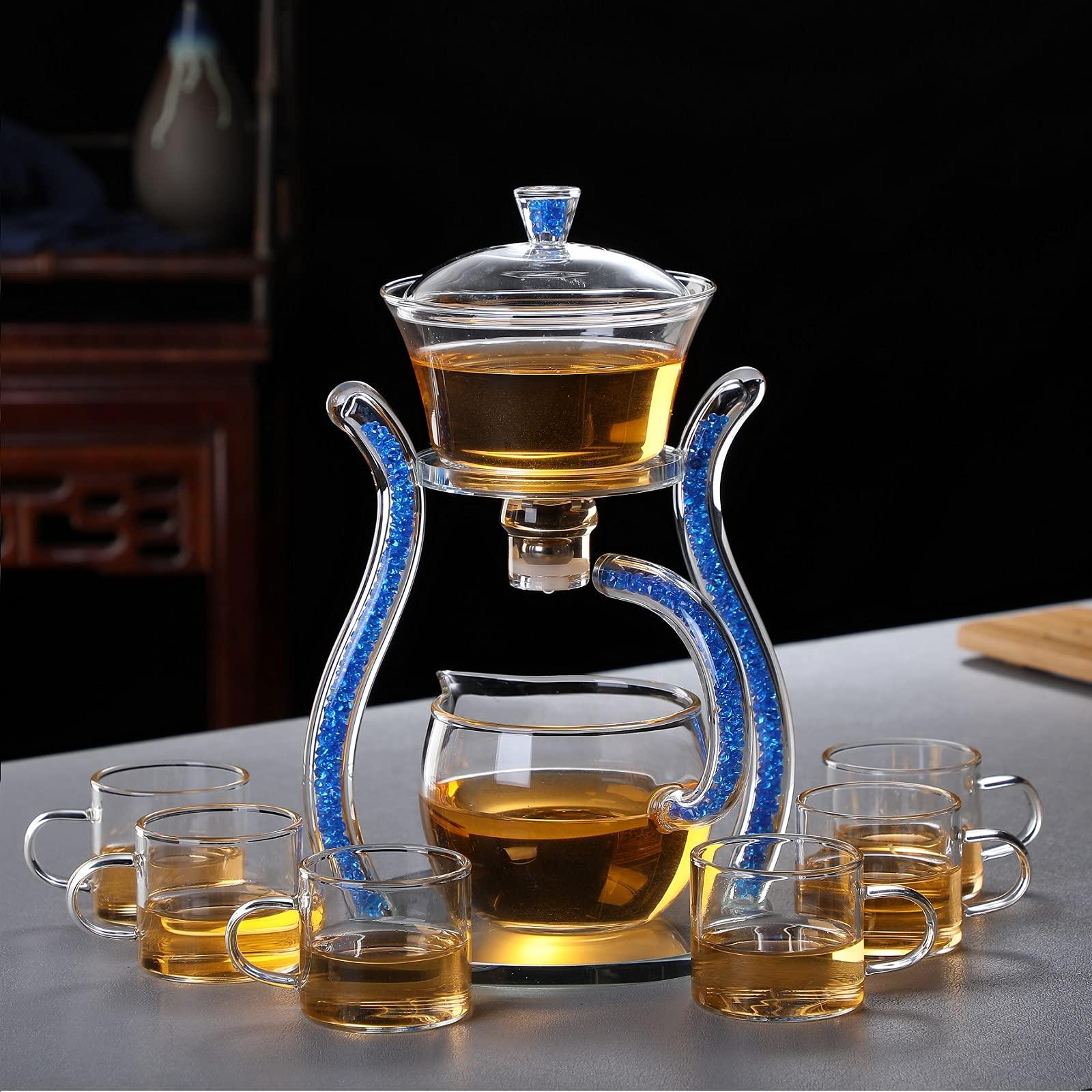 RORA Lazy Kungfu Glass Tea Set Semi Automatic Drip Rotating with Infuser Glass Teapot Set (6 cups)