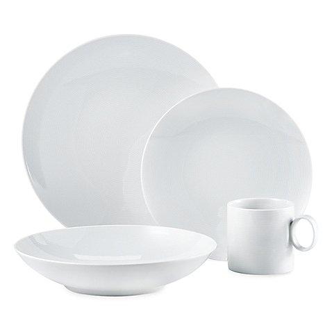 The Rosenthal Thomas Loft 4-Piece Place Setting features a subtle white on white line relief and is a wonderful choice for entertaining Includes: 11" dinner plate 8.5" salad plate 9.5" soup bowl 11 oz. mug Porcelain Dishwasher and microwave safe