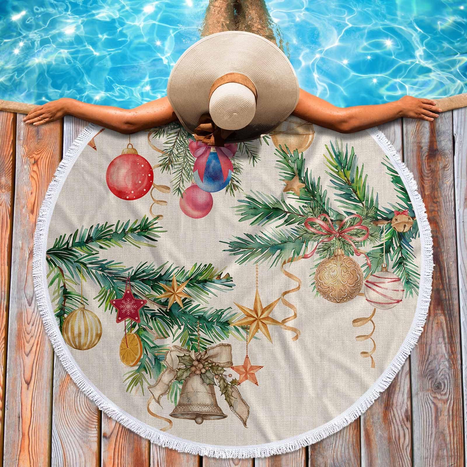 - Sandproof & Absorbent - Round beach mat blanket with tassels made of microfiber, soft and comfortable, good water absorption and quick drying make this towel for bath dry your body quickly, and don't worry about the oversized beach towel becoming heavy. It can also be folded into a small size, easy to carry, and is an ideal must-have for travel.