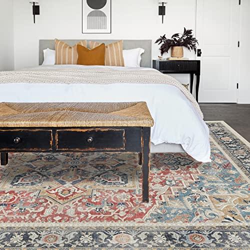 • CLASSIC STYLE, MODERN RUG TECHNOLOGY: Our vintage-style Kamran Cayenne Red Washable Area Rug features a large medallion motif and an ornate border in shades of crimson, navy, and gold; inspired by traditional Heriz designs.