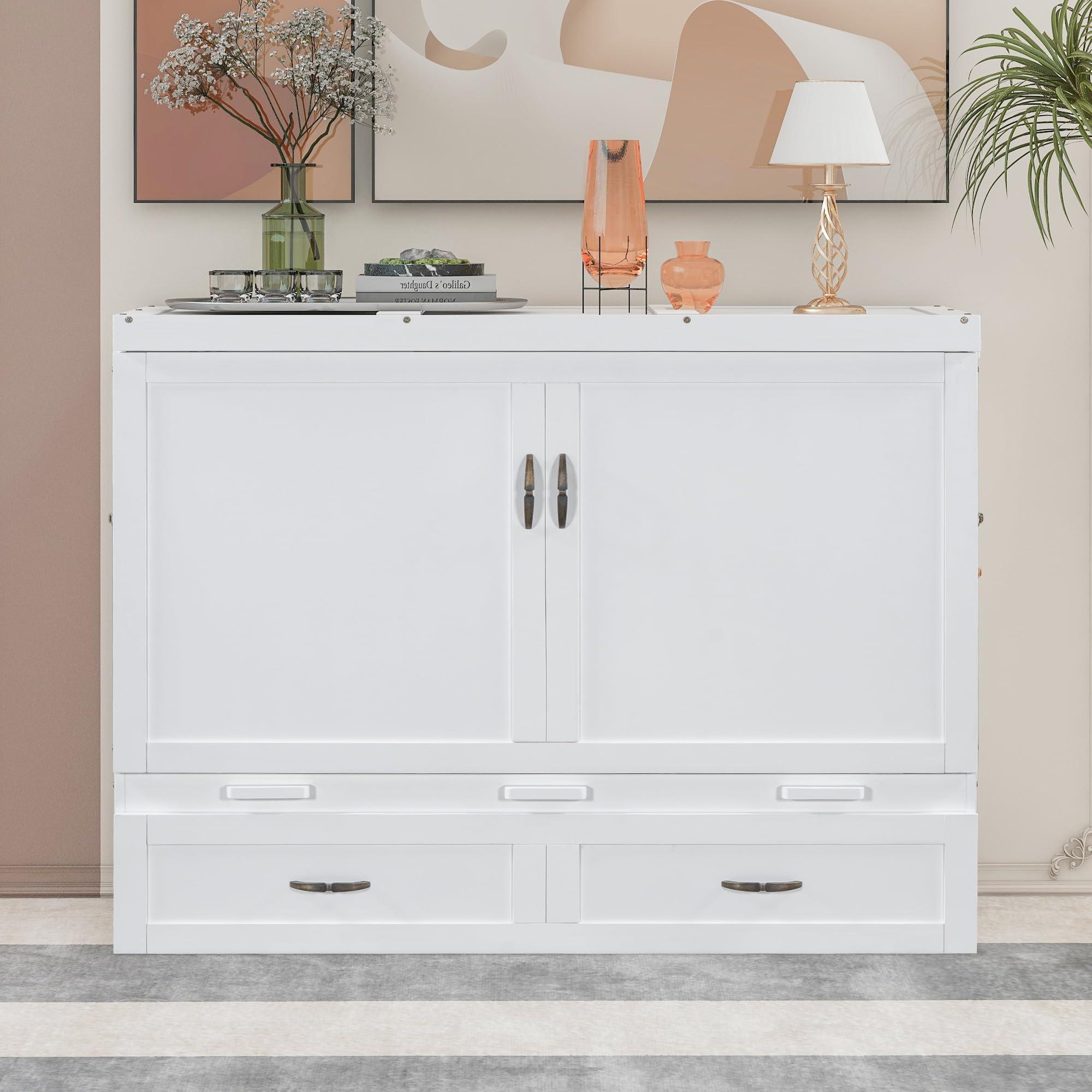- Dimensions & Assembly74.3"L x 56.1"W x 30.7"H(As a bed) 56.1"L x 22.8"W x 44.9"H(As a cabinet) Mattress not included.This Murphy bed is delivered in two packages, along with the installation manual and full set of hardware necessary to guide you through the process of assembly, and the bed will definitely be assembled conveniently.