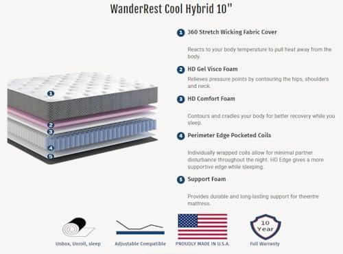 Introducing the WanderRest Cool Hybrid 10" RV Mattress with Cooling Gel Memory Foam the ultimate solution for your sleeping needs on the road. This hybrid mattress combines the best of both worlds the support of coil springs and the plush comfort of gel memory foam, to provide you with a truly luxurious sleeping experience. The WanderRest Cool Hybrid features a high density foam perimeter that not only adds to the overall firmness of the mattress but also provides excellent edge support. This means you can sleep comfortably anywhere on the mattress without feeling like you might roll off. The gel memory foam layer adds an extra touch of comfort and support by conforming to your body shape and providing pressure relief. This helps promote better sleep and reduces tossing and turning throughout the night. Plus, the gel infusion helps regulate body temperature, keeping you cool and comfortable all night long. With a medium to firm level of firmness, this RV mattress strikes the perfect balance between support and comfort. It's suitable for all types of sleepers and is especially great for those who struggle with back or joint pain. Designed specifically for RVs, this mattress is lightweight, easy to transport, and fits perfectly on standard RV bed frames. Its breathable construction allows for proper air circulation, keeping the mattress fresh and hygienic for a longer period of time. Upgrade your RV sleeping experience with the WanderRest Cool Hybrid 10" RV Mattress with Gel Memory Foam. Get the perfect blend of support and comfort for a truly restful sleep on the road. Order yours today and wake up feeling rejuvenated and ready to take on your next adventure.