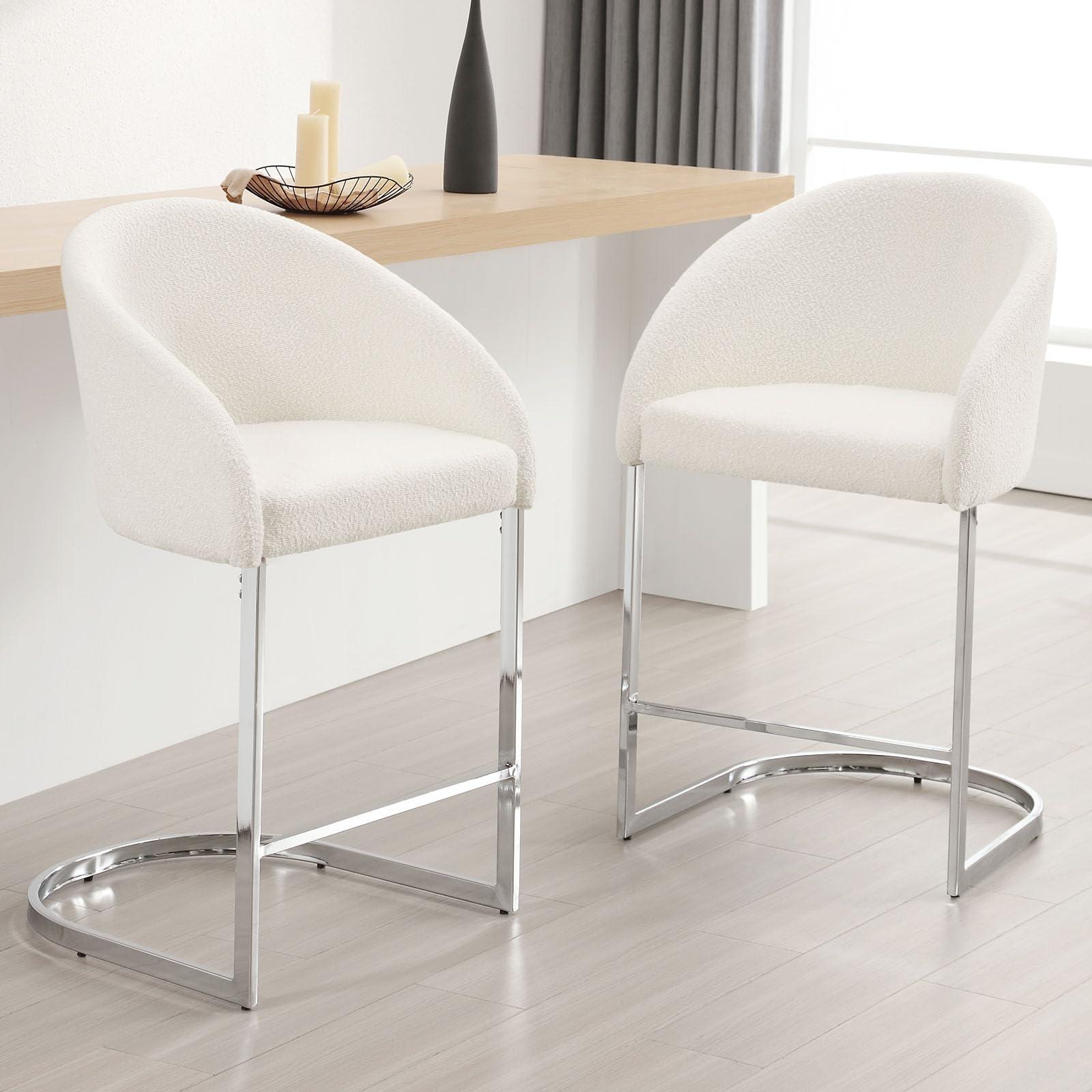 - Versatile and Easy AssemblyWith its simple yet stylish design and chrome-plated base, these boucle bar stools effortlessly complement various styles, making them perfect for modern and minimalist kitchen island, bar table, home pub, dining room, leisure area, and more. Assembly is a breeze, taking just 10 minutes with the help of the included clear instructions and tools.