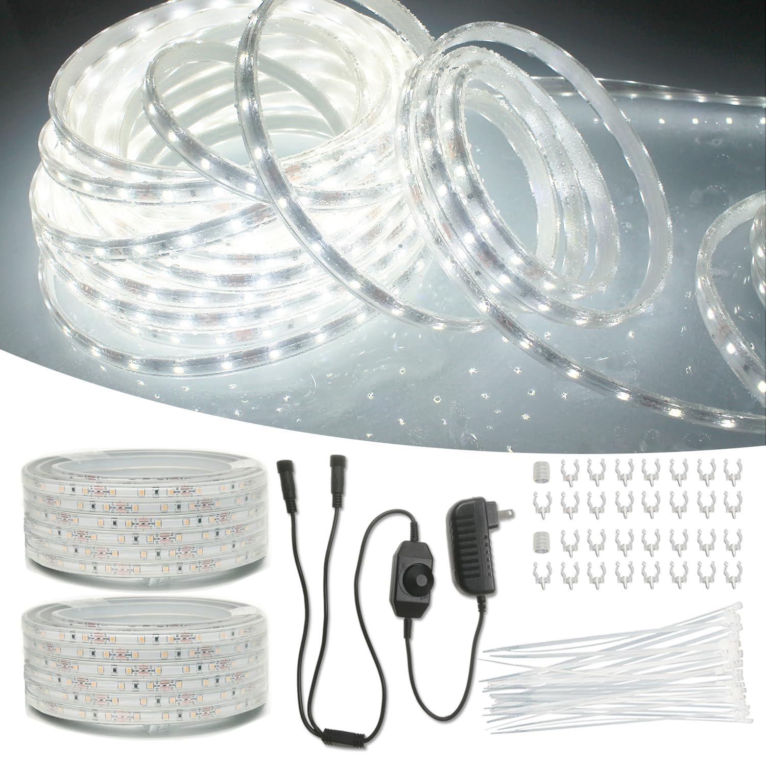 RYGDENG RYGDENG 2-Pack 33ft Outdoor LED Rope Lights Waterproof, Flat & Flexible White Strip Lights, Dimmable Rope Lighting, 12v Rope Light for Outside, Indoor Bedroom, Kitchen, Pool, Backyards