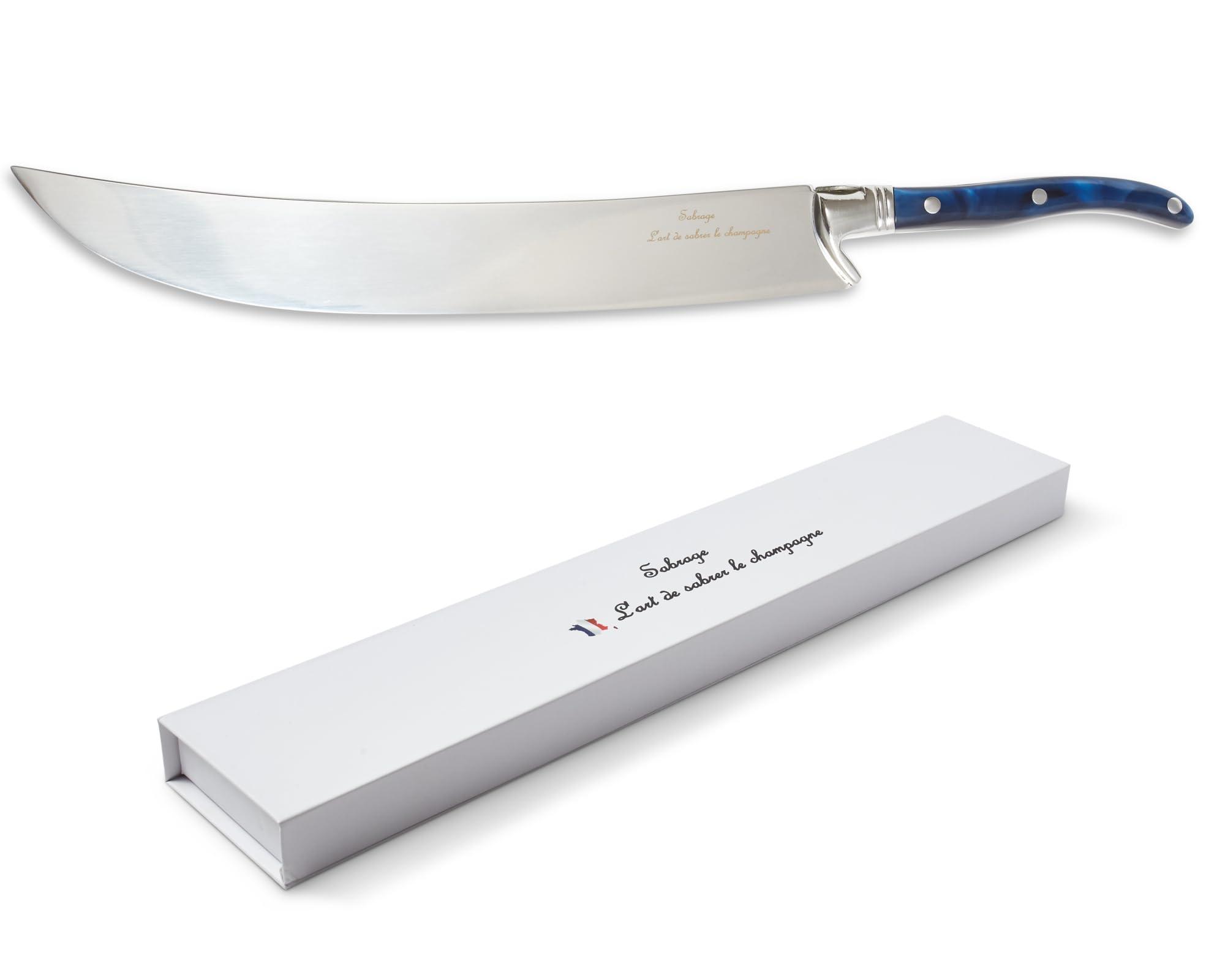 - Elegant Kitchen Gift or Bar Gift: Delivered in a French-style gift box, engraved with 'Sabrage L'art de Sabrer leChampagne', this Champagne Sabre makes for an ideal gift for weddings, parties, champagne connoisseurs, wine sommeliers, and art collectors alike. This handmade French Laguiole Sword is a perfect idea for a sophisticated anniversary gift, a timeless wedding sword, a stylish kitchen gift or home bar accessory. The SABRAGE gift box features a hidden clasp and a molded suede interior to protect your Champagne Saber.