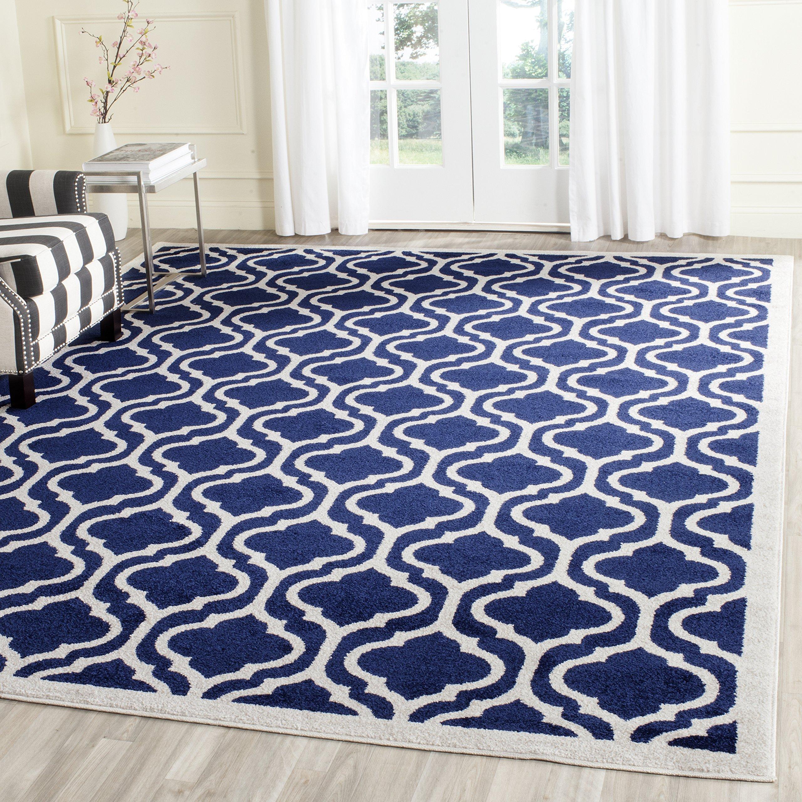 SAFAVIEH Amherst Collection 7' Square Navy / Beige AMT402P Moroccan Geometric Non-Shedding Living Room Bedroom Dining Home Office Area Rug