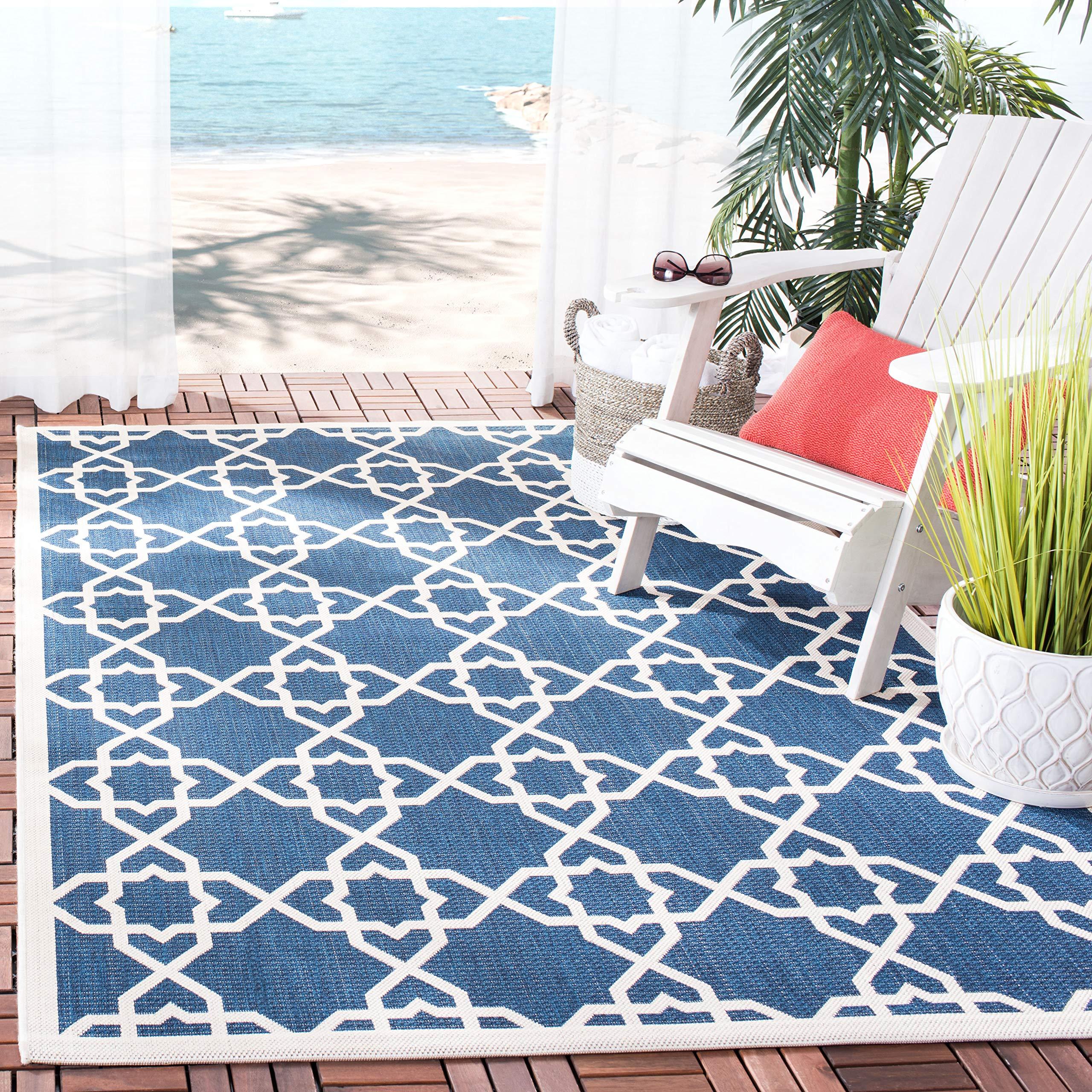 Primary Color: Navy Pile Height: 0.25 inches Material: Polypropylene Style: Contemporary Construction: Power-loomed Rug Type: Indoor/Outdoor Feature: Latex Free Rug Dimensions: 8' x 11'