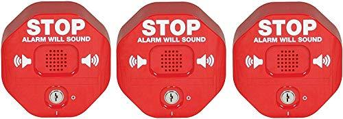 Safety Technology International - STI 6400 Exit Stopper Multifunction Door Alarm. Helps prevent unauthorized exits or entries through emergency doors. If the protected door is opened, the electronic Exit Stopper (STI-6400) emits an ear piercing 105 dB warning horn, which will draw attention in a hurry. When activated, the alarm will continue for 30 seconds, three minutes or continuously (as preset by the user). A key operated override will silence the alarm and allow authorized exits. Another option is annunciator mode, in this mode it announces a doors opening with a set of 10 beeps and then resets. This highly visible stop sign design acts as a deterrent, completely self-contained and easy to install. May be mounted on top, right, left or next to almost any door. Exit Stopper is fitted with a long life 9-VDC alkaline battery. It is available in red or green for almost any type of door, mounting or installation. Has a 3 year guarantee against breakage of polycarbonate in normal use (one year on electro mechanical and electronic components). Safety Technology International, Inc. "We protect the things that protect you"