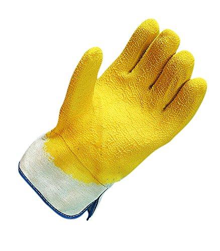 The San Jamar 1000 oyster shucking glove is designed to provide cut protection while shucking and handling oysters. This glove features a heavy-duty textured latex rubber exterior for maximum gripping ability. The cotton lining keeps hands dry and prevents chafing even during extended wear. The liquid-proof latex rubber exterior makes this glove easy to clean. The glove can fit either the left or right hand. One size fits all.