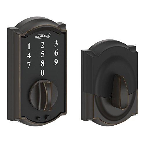 Aged Bronze, Touch Keyless Touchscreen Deadbolt With Camelot Trim, No Key To Lose, No Re-Keying Or Cutting New Keys, No Keys At All, Cylinder Free Design, Slim Profile & Stylish Trim That Pairs Perfectly With Interior Hardware, Scalloped Architectural Details, Designed & Tested For Strength & Durability.