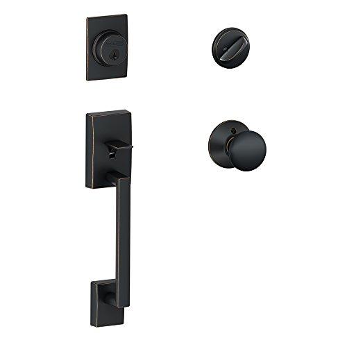 SCHLAGE century active handle set comes complete with a high security deadbolt and bottom handle offered in a variety of styles and finishes to fit all your styling needs.