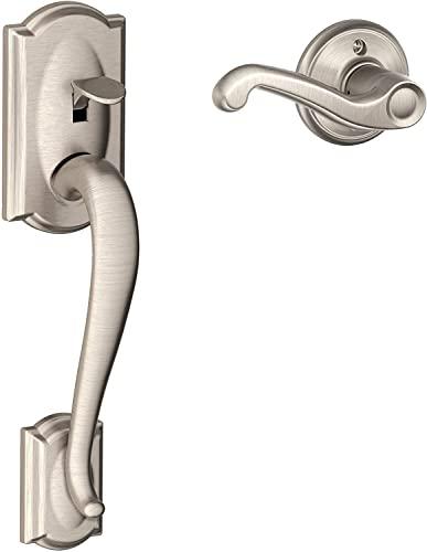 SCHLAGE Schlage FE285 CAM 619 FLA RH Camelot Front Entry Handleset with Right-Handed Flair Lever, Lower Half Grip, Satin Nickel