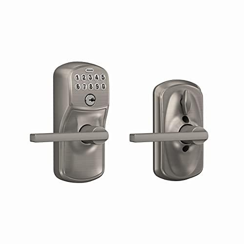 Schlage Fe595 Plymouth keypad lever combines convenience with functionality with its key or keyless option. With a ansi/bhm grading of 2, it is ideal for garage entry doors, home offices, computer rooms, utility rooms, etc. Backed by a limited lifetime warranty on mechanical and finish and 1 year electronic warranty.