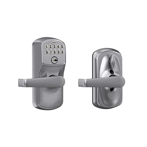 Eliminate the need to hide or carry house keys and never have to worry about losing or forgetting them with this Schlage Plymouth satin chrome elan keypad lever. The electronic keypad can be programmed for up to 19 user Codes. The lever is reversible for easy installation.