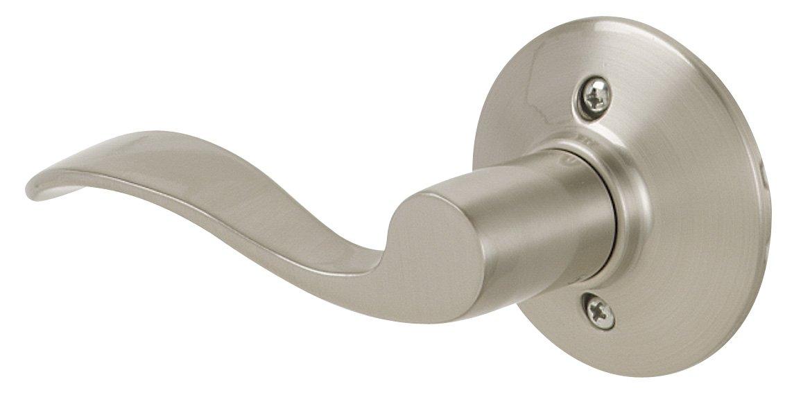 Schlage F170VACC619LH Satin Nickel Accent Design Left Hand Dummy Lever Lockset has a lifetime anti-tarnish finish warranty. Comes in visual pack.