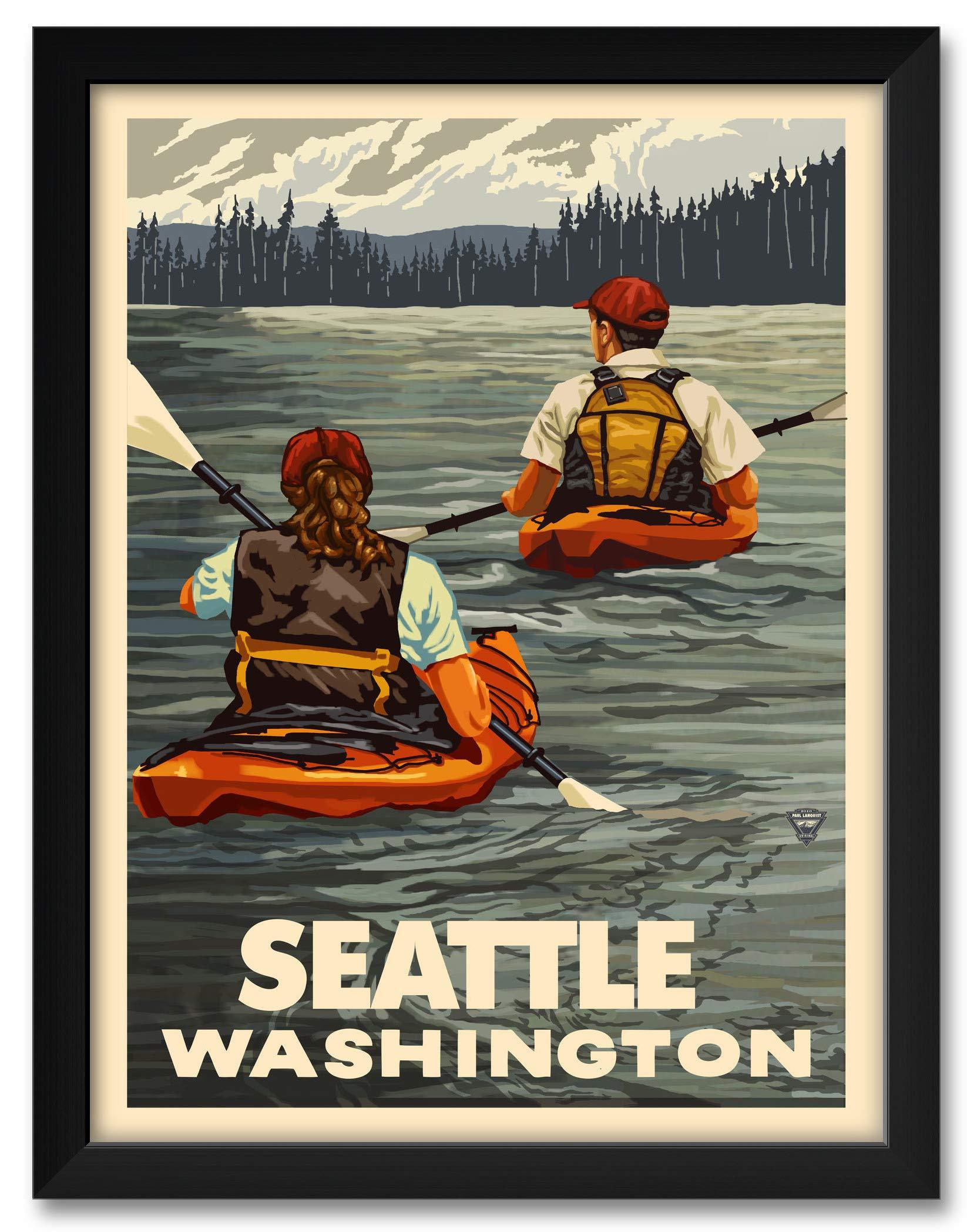 This work of art was designed by Artist Paul A. Lanquist (PAL), a Pacific Northwest artist who currently lives in central Oregon. Through the years, PAL has gravitated to the work of illustrators from the 20's, 30's, and 40's that use color and design to communicate their ideas in a straightforward way. By combining the nostalgic look and feel of the past with the spectacular scenery of this country, PAL has created destination and travel posters that capture the beauty and life style of these unique areas. This professionally framed giclee art print is from an original work of art. All framed prints are professionally printed, mounted, framed, and finished in the United States. First, the art is printed on the highest-quality archival art paper using premium, long-lasting pigment-based art inks that generate intense, rich colors that are true to the artist's vision and original creation. Next, it is mounted and secured to prevent slipping, crumpling, or moving around. Then it is framed with a quality picture frame, expertly finished with art-quality clear acrylic, and fitted with a protective backing that includes hanging wires for an easy to hang piece of art. The time, care, and professionalism put into producing your wall art will make it a tremendous addition to your kitchen, bedroom, family room, office, cabin, or even dorm room.