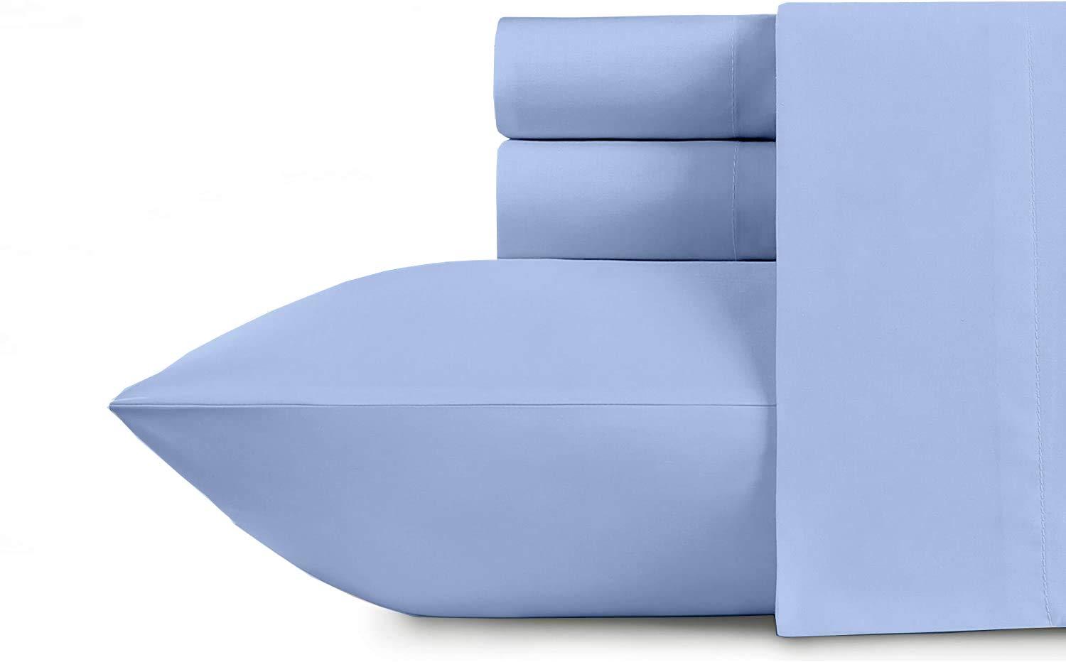 - 100% Cotton Sheets- Set of 4 pc Bedding - (1 Fitted sheet,1 Flat Sheet, 2 Pillows covers) by Light Blue Solid 39X80 inch with 18"-24" Extra Deep Pocket Bed sheets