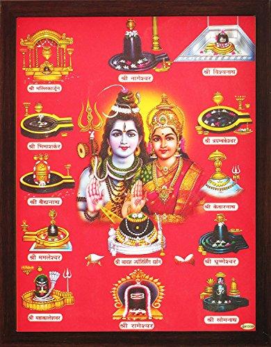 - Shiva and Parvati with 12 Jyotirlinga, A Poster painting with frame for Hindu Religious Worship Purpose
