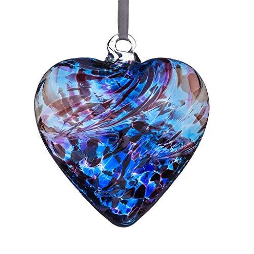 - Mouth blown glass heart with hanging ribbon
