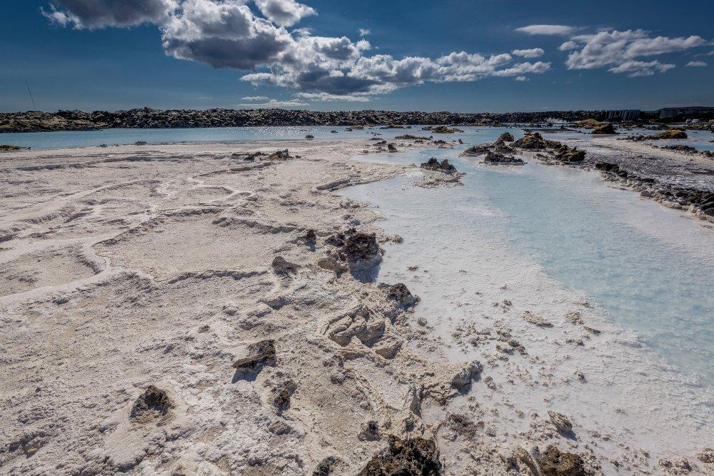 Silica deposits in water by the svartsengi geothermal power plant near the blue lagoon bathing pools iceland