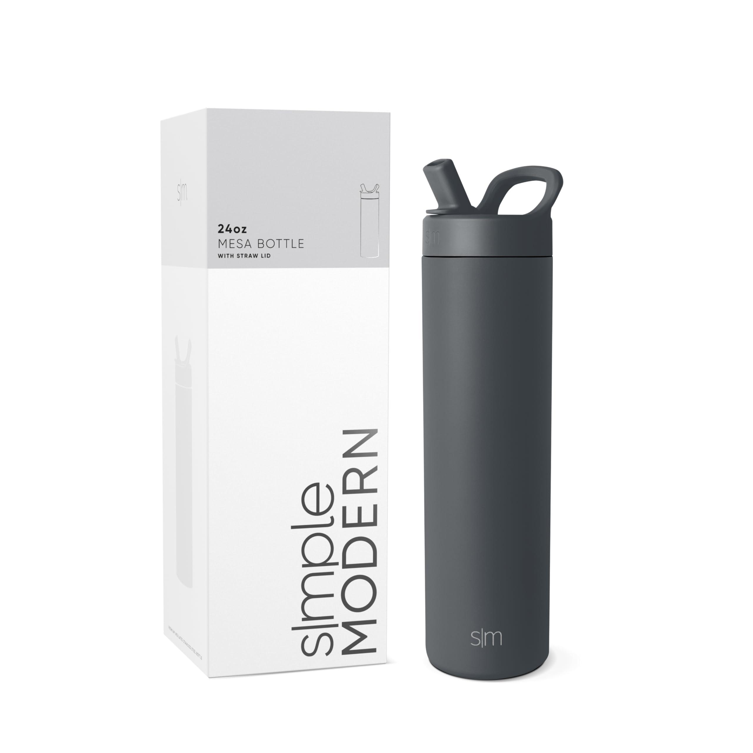 The Mesa Water Bottle is Simple Modern's newest water bottle line. This product was intentionally designed with a wide mouth opening - perfect for adding ice and making it easier to clean. The Mesa water bottle is internally threaded to provide premium insulation. The bottle is made from double walled vacuum insulation, keeping your beverage cold for hours! It comes with a straw lid that is leak-proof and has a large handle for carrying. Throw it in the dishwasher for easy cleaning. The 16oz & 24oz sizes are cupholder friendly and will fit in your backpack sleeve.