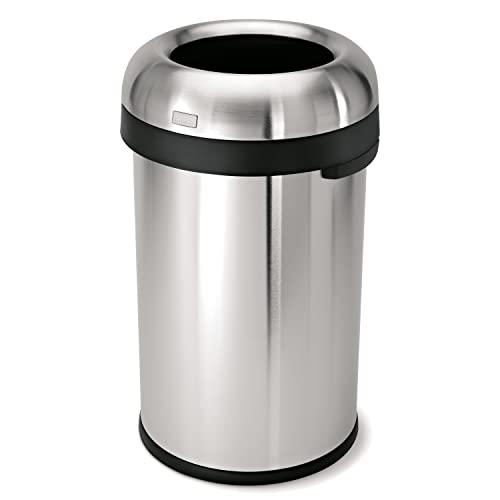 simplehuman's bullet open can has a 10.5-inch opening that makes it easy to scrape food off trays or toss in large items like pizza boxes. The heavy-gauge stainless steel construction, lift-off lid and extra-large capacity make it an ideal choice for high-traffic commercial spaces such as hotel lobbies, restaurants and commissaries.
