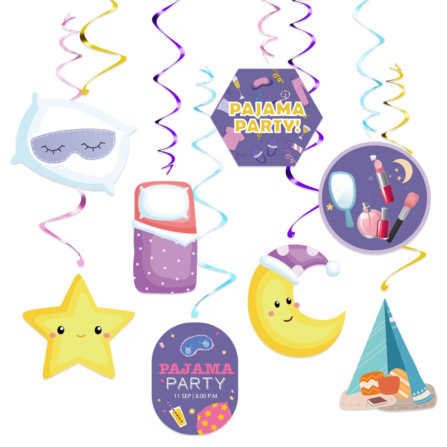 - Slumber party must-haves-Make your girl's slumber party a night to remember with our Pajama Party Decorations. Our set includes a banner, cake topper, cupcake toppers, and more to add the perfect touch to your sleepover party.
