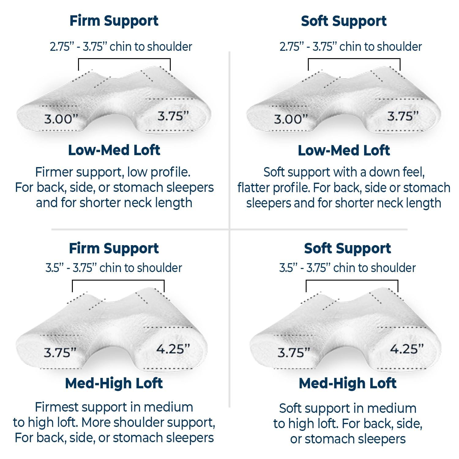 - CERVICAL SUPPORT AND SPINE ALIGNMENT - Our cervical pillow is perfect for sleeping on your side, back or stomach and reducing neck and shoulder pain. Supports the natural curve of your neck and keeps airway passages open for a great night's sleep every night. Helps maintain proper alignment and improves your ability to sleep deeper and longer while protecting your spine.The design also works great for CPAP users. The best CPAP pillow made!