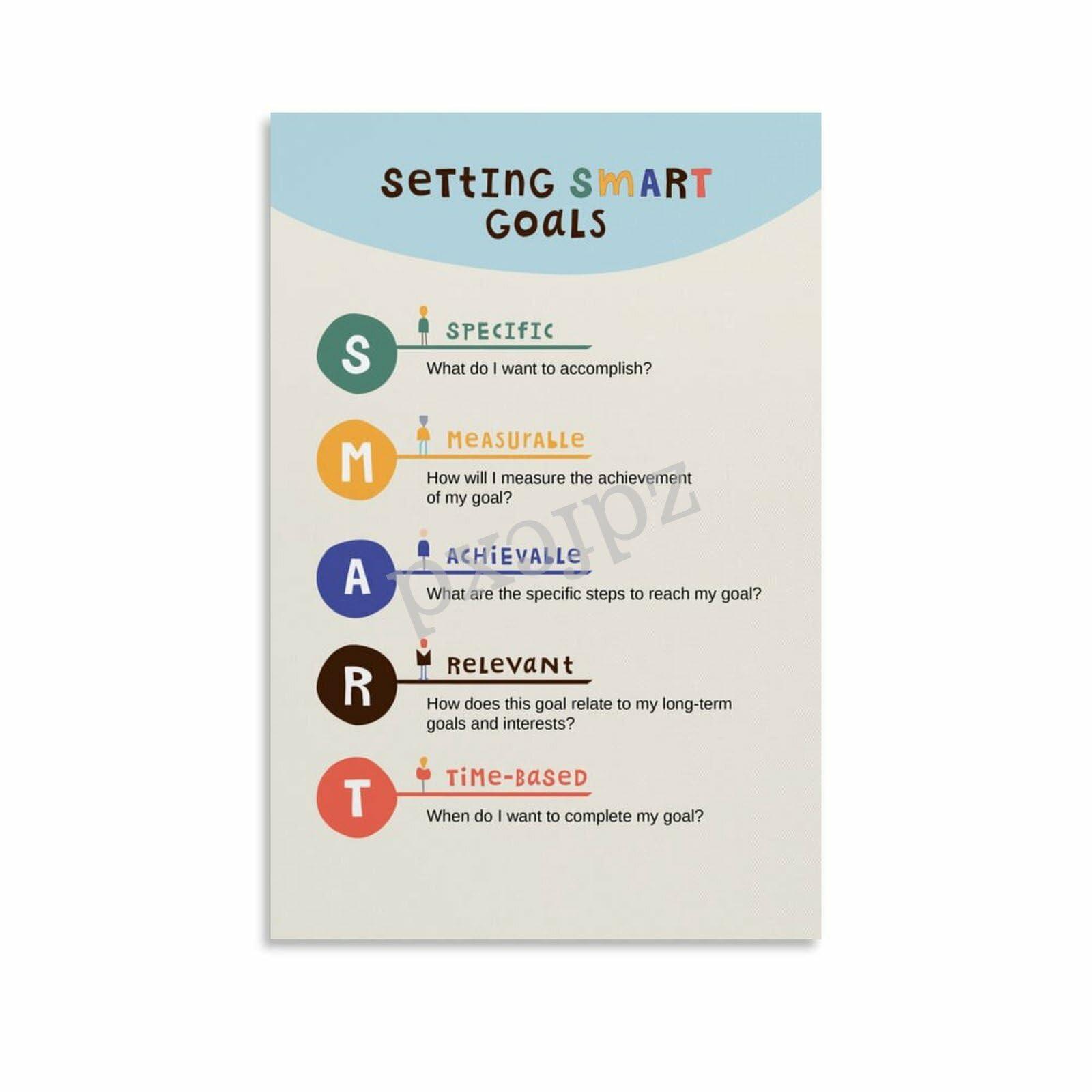 Generic SMART Goals Poster Goal Setting Poster S.M.A.R.T Goals Classroom Office Wall Art (4) Canvas Painting Wall Art Poster for Bedroom Living Room Decor 12x18inch(30x45cm)