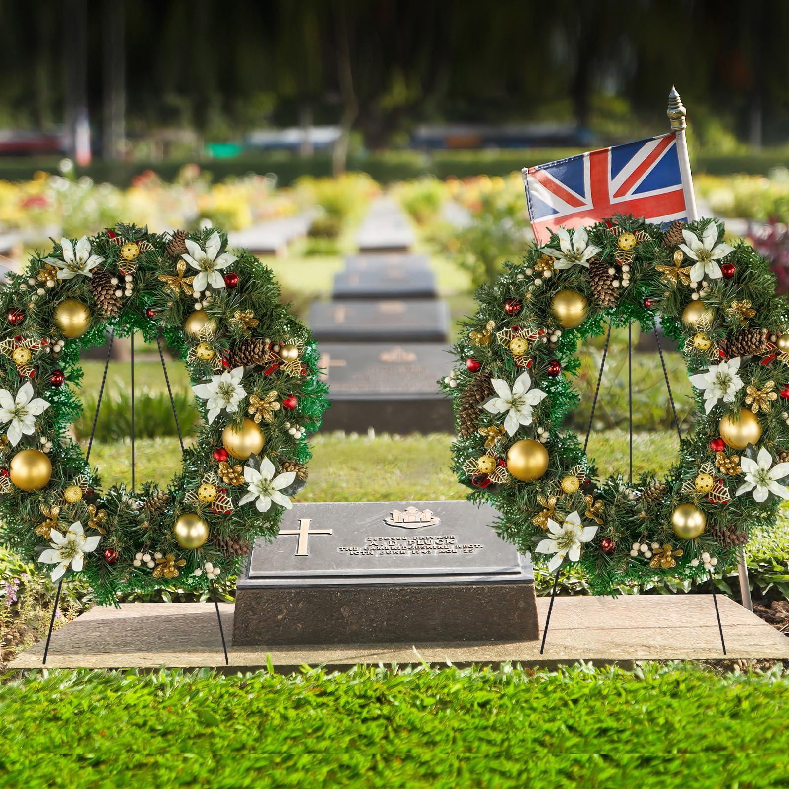 The metal structure of Christmas wreath stand ensures that the wreath in the cemetery remains firm, and does not disappoint your desire to convey love and commemoration.